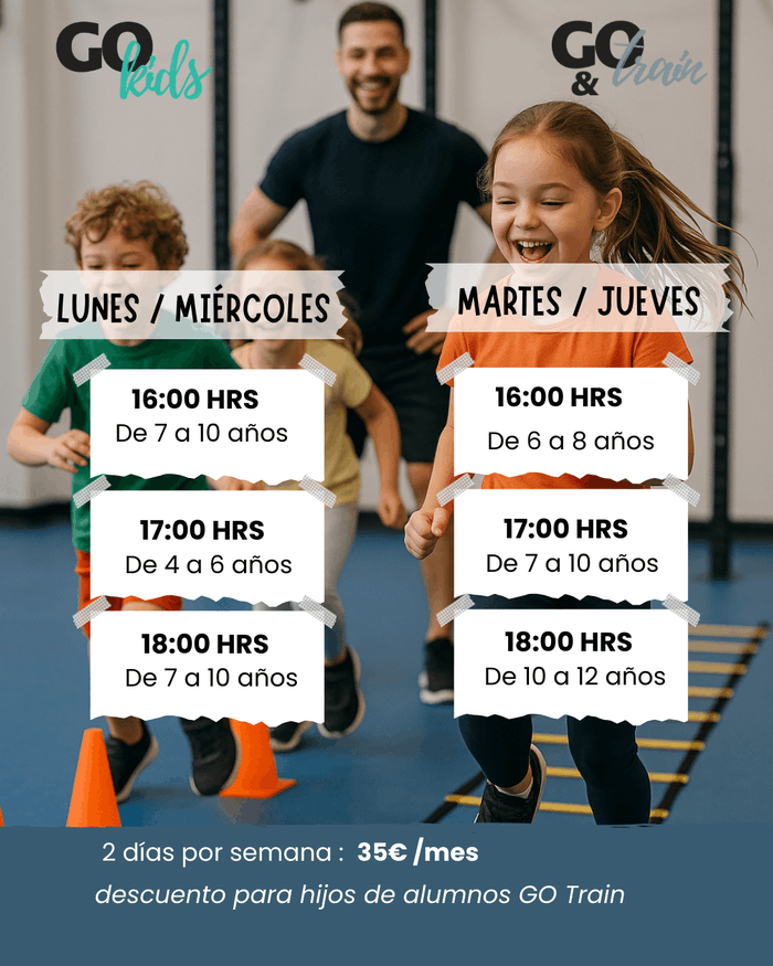En GO Kids, tus hijos disfrutan de entrenamientos seguros, variados y adaptados a su edad, mientras aprenden a moverse de forma divertida y eficaz. Y lo mejor: tú también puedes entrenar al mismo tiempo, en nuestros programas para adultos, bajo el mismo techo. De esta manera, toda la familia cuida de su salud en paralelo y convierte el deporte en un hábito compartido.